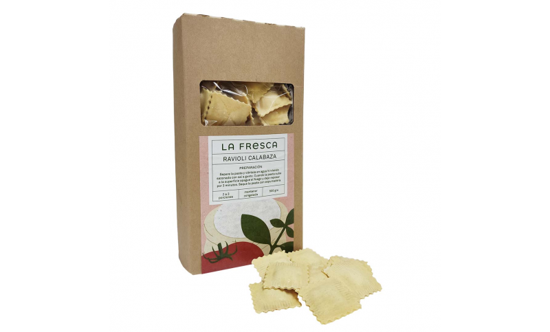 Nuestro Ravioli de calabaza/ricotta es una pasta rellena elaborada artesanalmente, no contiene aditivos ni preservantes artificiales. Lo puedes encontrar en nuestras sucursales en presentación de 500 gramos.